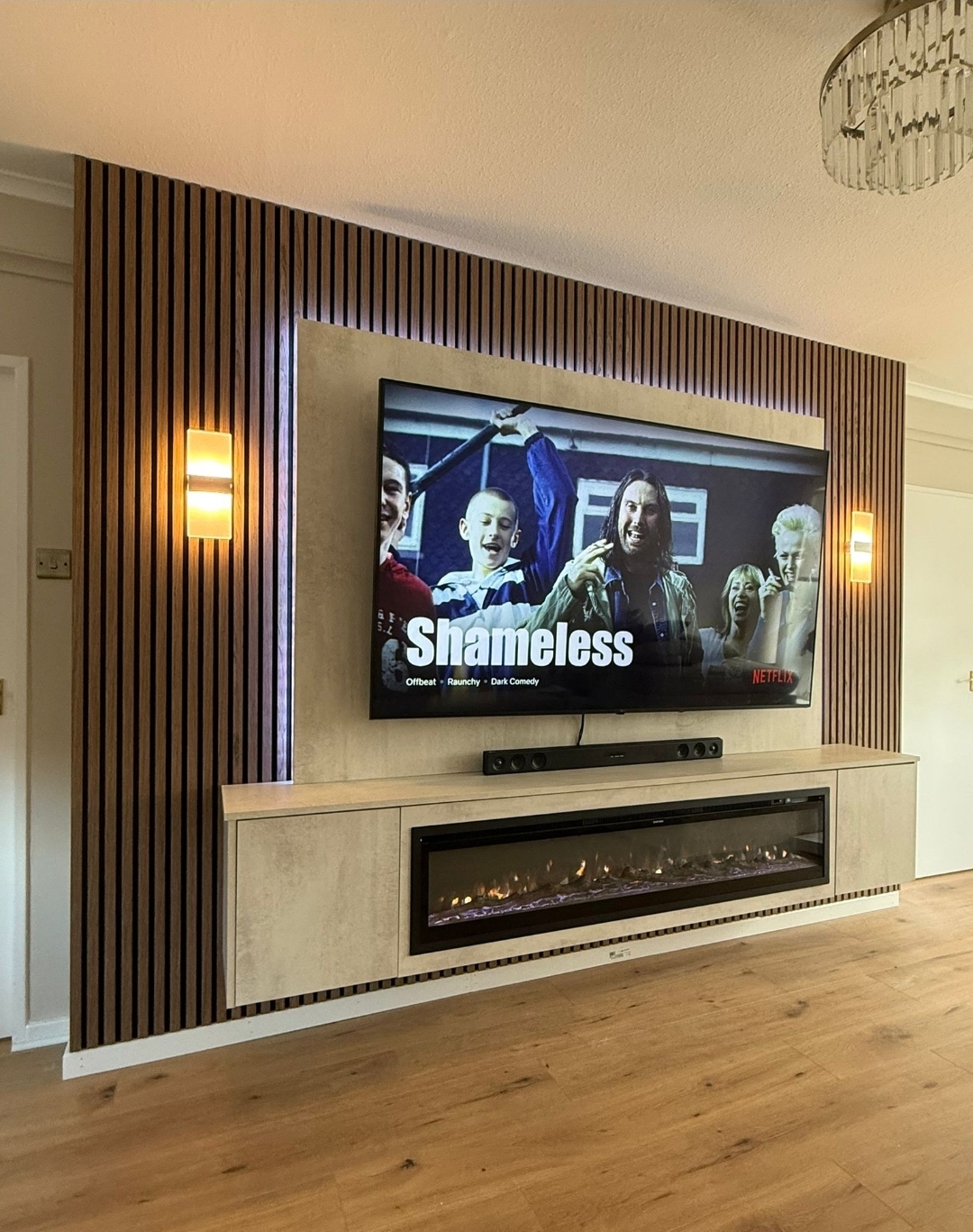 Bring warmth, atmosphere, and modern elegance into your home with our fully integrated fireplace media wall — designed to be the ultimate focal point.