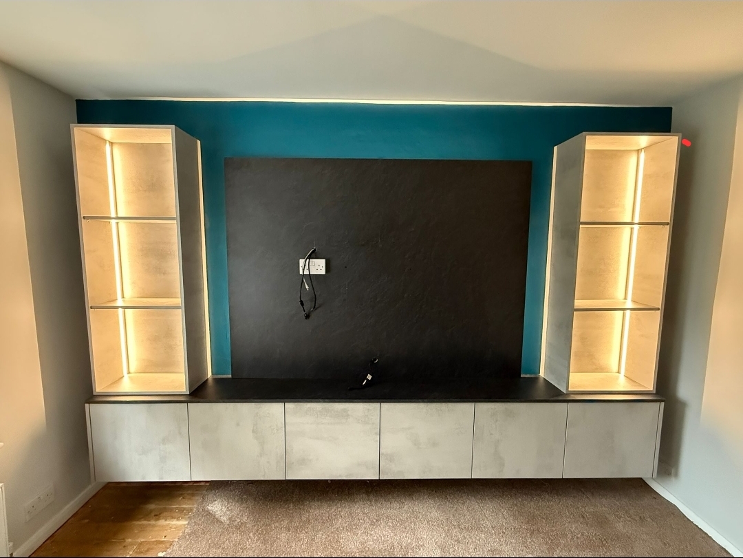 Our tv panels and cabinets are constructed from 18mm melamine-faced chipboard, sourced responsibly to ensure durability, quality, and environmental sustainability.